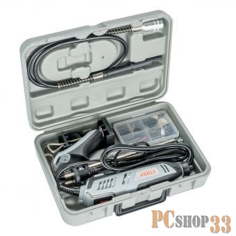 пластиковый кейс 1 шт., угольные щетки (запасной комплект) 1 комплект, насадки 1 комплект, шестигранный ключ 1 шт., ключ для цангового патрона 1 шт., дополнительная цанга 1 шт., гибкий вал 1 шт., опорная штанга с креплением 1 шт., боковой упор 1 шт., руководство пользователя