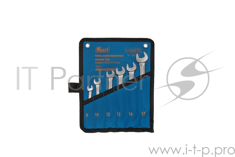 Набор комбинированных ключей KRAFT КТ 700551 (8 - 17 мм) 6 шт. хром-ванадиевая сталь (Cr-V)