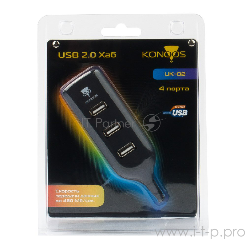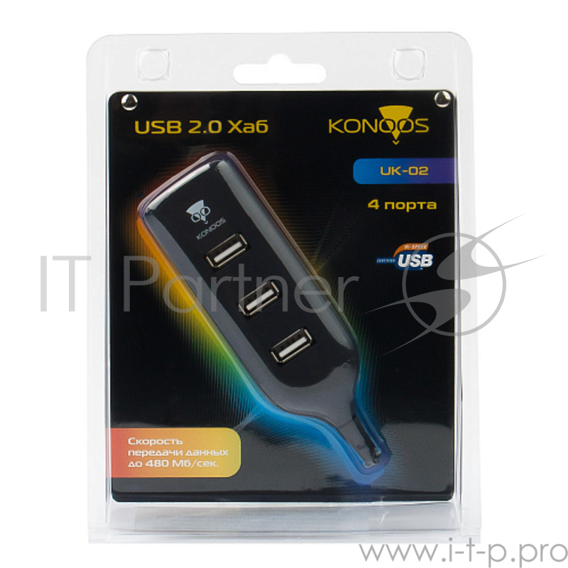 Контроллер HUB USB 2.0 Konoos UK-02 "Фрегат", 4 порта USB, блистер
