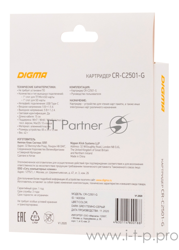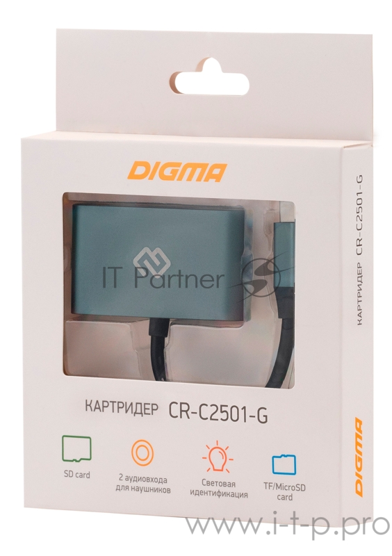 Устройство чтения карт памяти Type C Digma CR-С2501-G серебристый