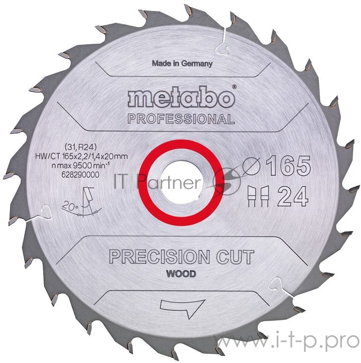 Диск отрезной по дер. Metabo PRECISION CUT WOOD PROFESSIONAL (628290000) d=165мм d(посад.)=20мм (циркулярные пилы) (упак.:1шт)