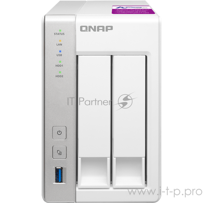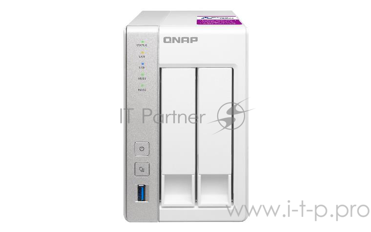 Дисковый массив QNAP TS-231P2-4G Сетевое хранилище, 2 отсека для HDD. ARM Cortex-A15 Annapurna Labs AL-314 1,7 ГГц, 4 ГБ.