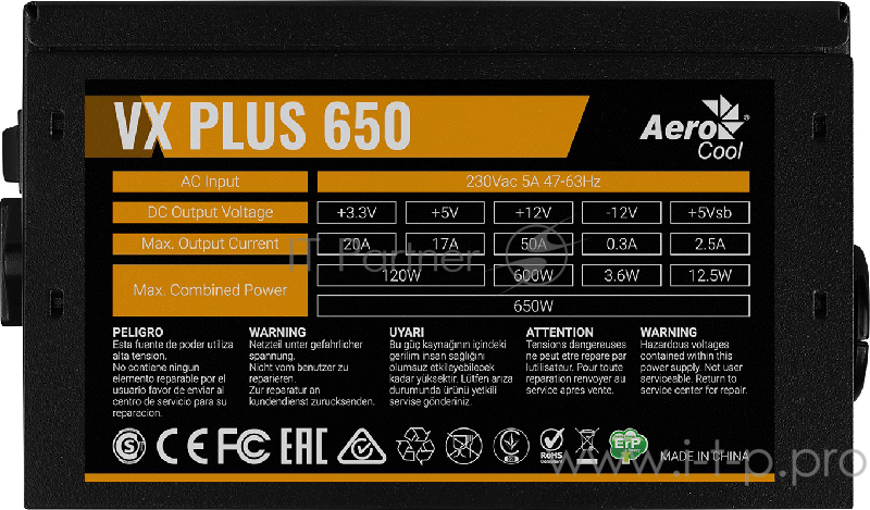 Купить Блок питания Aerocool VX-650 PLUS в Коврове. Забрать в магазине "Ваш Компьютер" г.Ковров пр-т Ленина 20