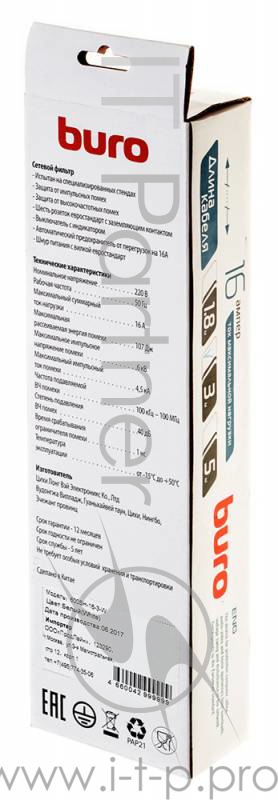 Удлинители, фильтры, преобразователи напряжения BURO 600SH-16-3-W