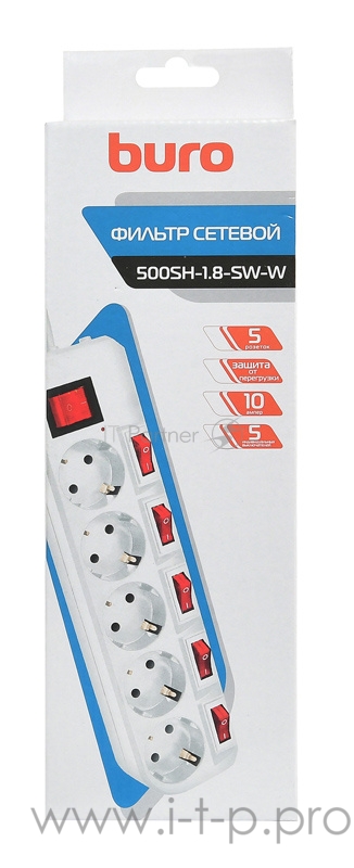 Сетевой фильтр Buro 500SH-1.8-SW-W 1.8м (5 розеток) белый (коробка)