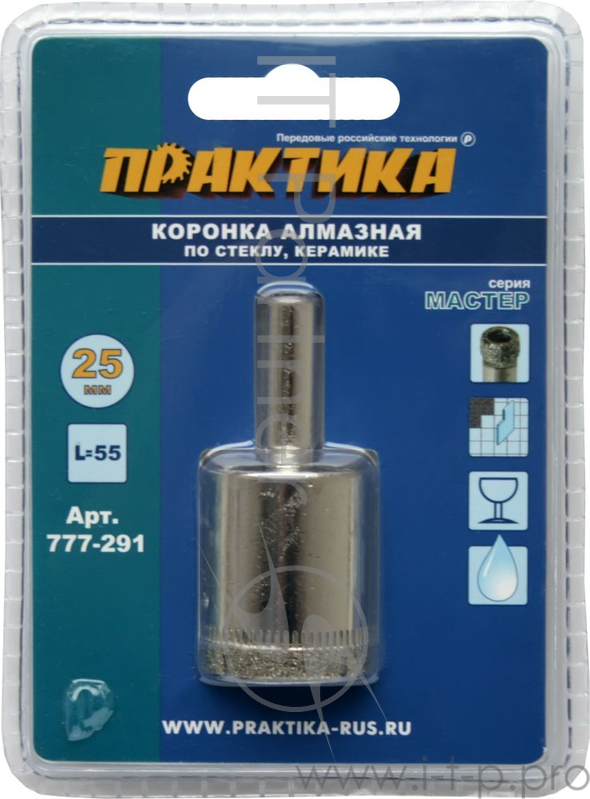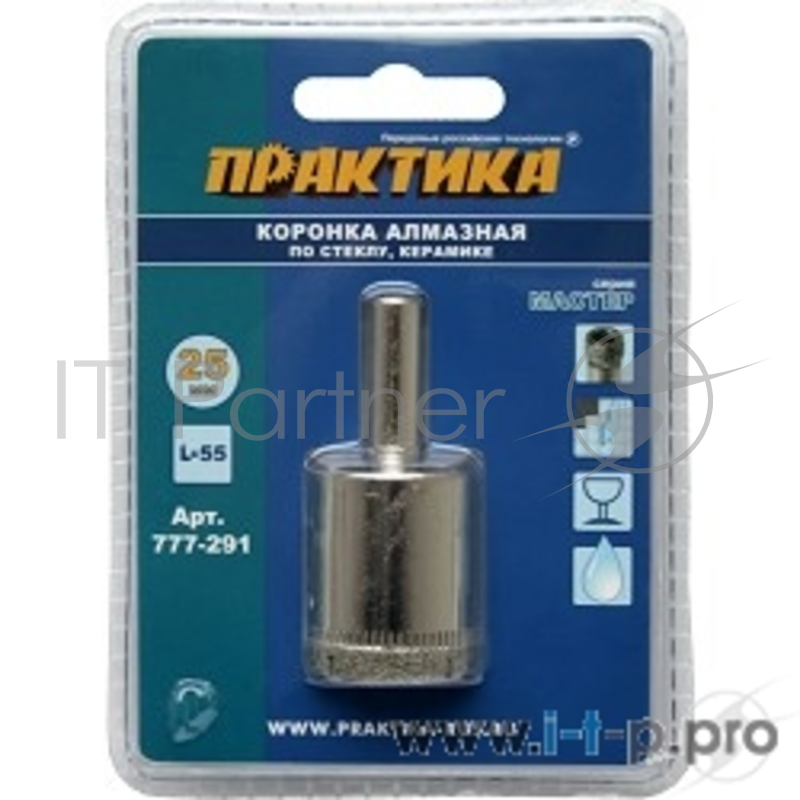 Сверла,коронки,наборы Коронка алмазная по стеклу керамике ПРАКТИКА 25мм 1шт блистер 777-291