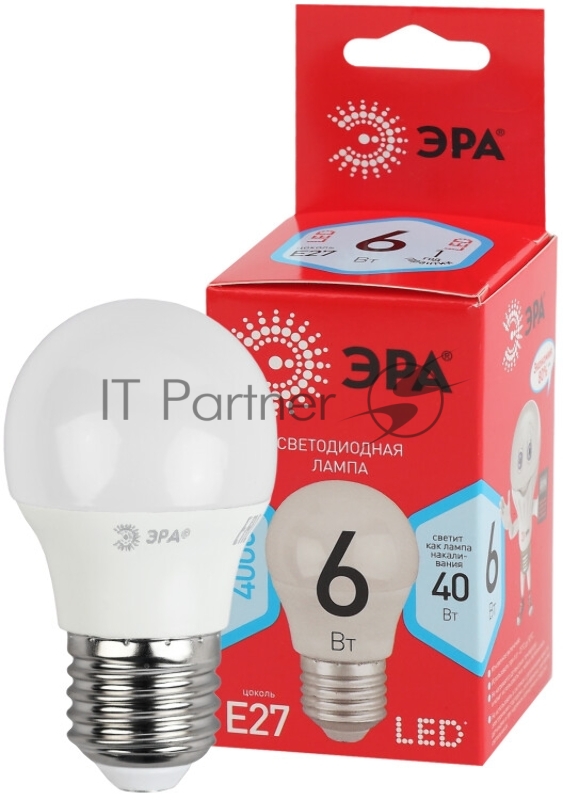 Лампа ECO LED P45-6W-840-E27 ЭРА (диод, шар, 6Вт, нейтр, E27) (10/100/4000)
