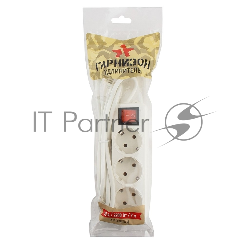 Сетевые фильтры Gembird Удлинитель Гарнизон EL-NB-G3-W-2, 3 евророзетки с выключателем и заземлением, допустимый ток 10А, длина 2м.
