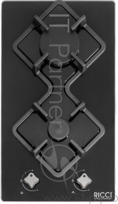 Газовая варочная панель RICCI RGN-KA2001BL 2 конфорки. Газ-контроль. авторозжиг. Нерж. сталь