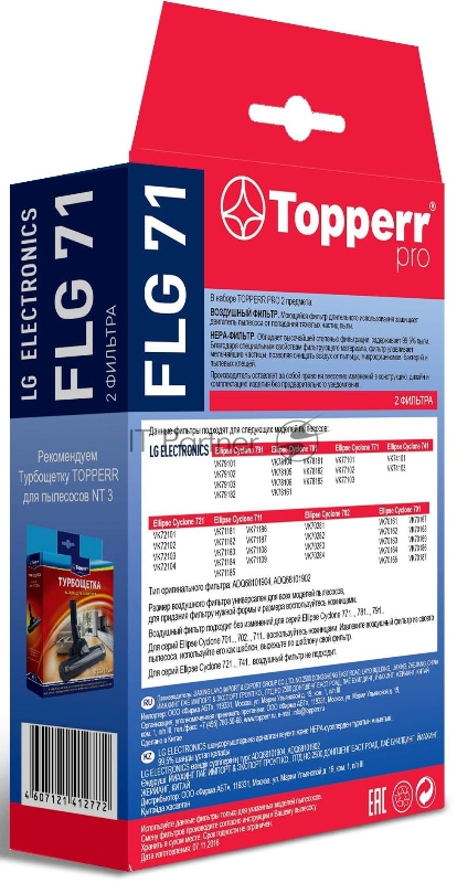 Фильтры комплект Topperr д/пылесосов LG:VK701,VK 702.,VK 711..,VK 721..,VK 781..,VK 791. 1119 FLG 71