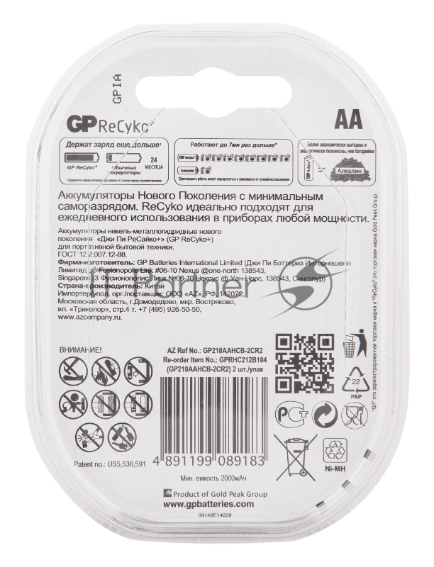 Аккумулятор + зарядное устройство GP Recyko E211210AAHC AA/AAA NiMH (2шт)