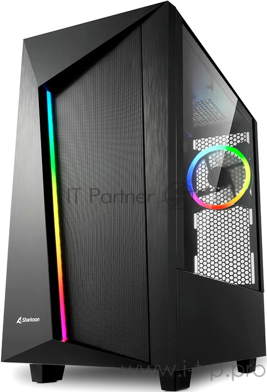 Корпус игровой Sharkoon REV100 RGB чёрный (ATX, закаленное стекло, fan 1x120 мм + 1 RGB x120 мм, 2xUSB 2.0, 2xUSB 3.0, audio)