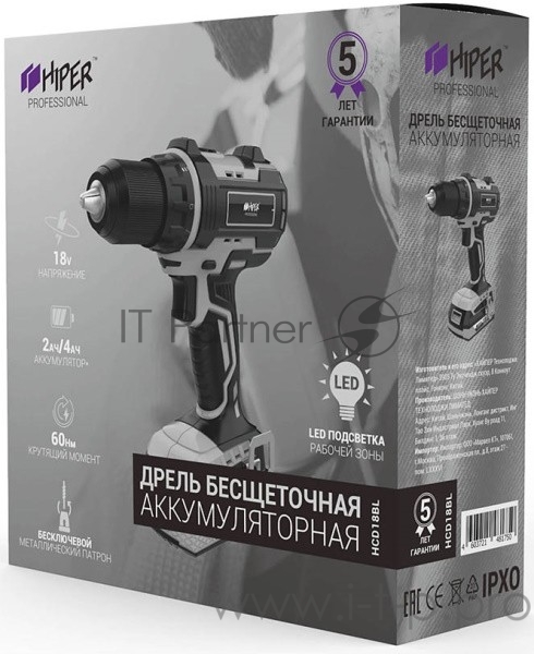 Дрель PROF HIPER аккумуляторная бесщеточная HCD18BL 18 В, 60Нм, БЕЗ АКК.