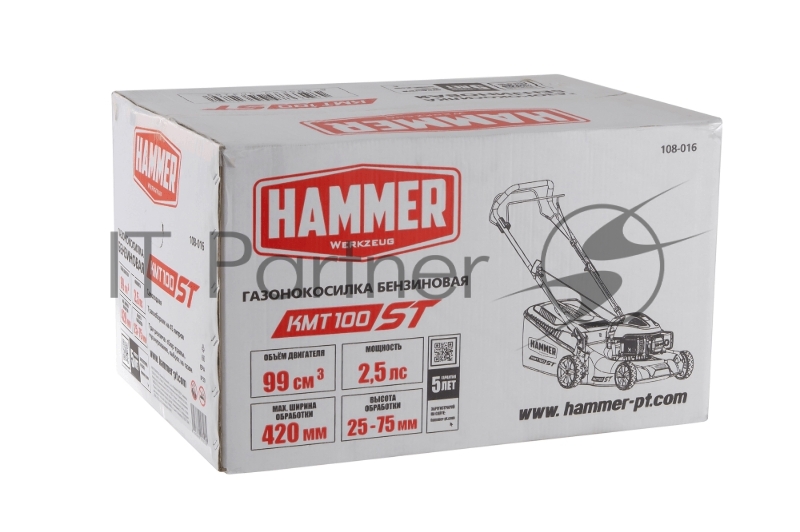 Газонокосилка бензо Hammer KMT100ST 2.5 лс 99см3 шир.42см выс.25-75мм травос.45л самох.мульч.