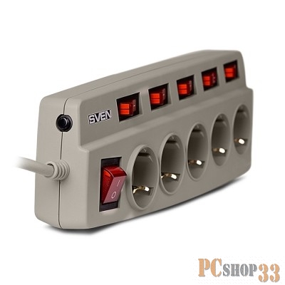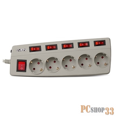 Сетевые фильтры SVEN Фильтр Platinum 5 м (5 розеток) серый, цветная коробка SV-013004