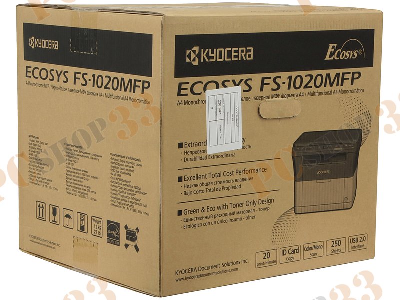 МФУ Kyocera ECOSYS FS-1020MFP A4, лазерный, принтер + сканер + копир, бело-серый (USB2.0)