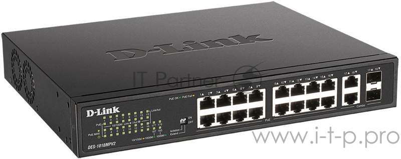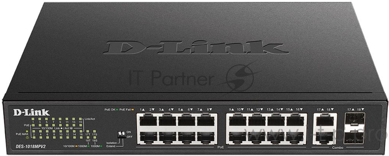 Коммутатор D-Link DES-1018MPV2 16x100Mb 16PoE неуправляемый