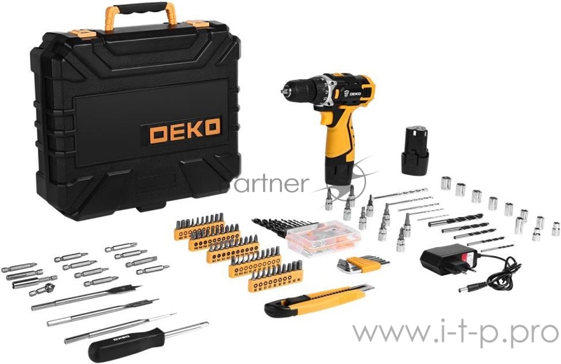 Аккумуляторная дрель 12В + набор 193 аксессуара в кейсе DEKO DKCD12FU-Li 063-4139