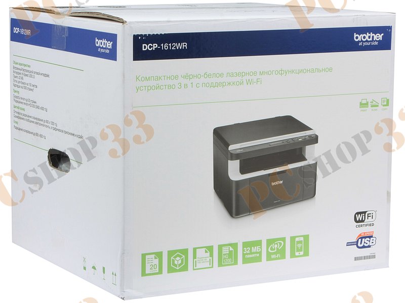 МФУ Brother DCP-1612WR A4, лазерный, принтер + сканер + копир, ЖК, бело-черный (USB2.0, WiFi)
