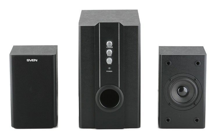 Колонки SVEN SPS-820,черная кожа/черный {2.1, 2 сат. + сабвуфер,18 Вт + 2 х 10 Вт (RMS) ,усил.- 20-20000 Гц}