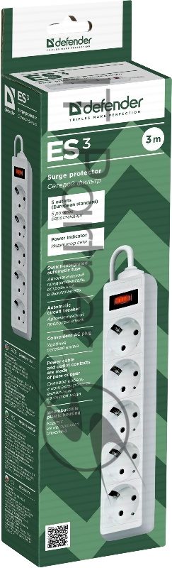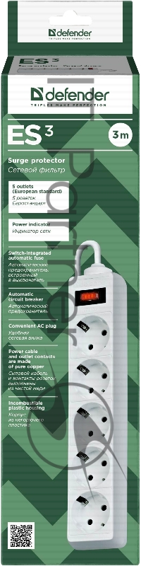Сетевой фильтр Defender Фильтр ES, 3.0м, 5 розеток белый 99482