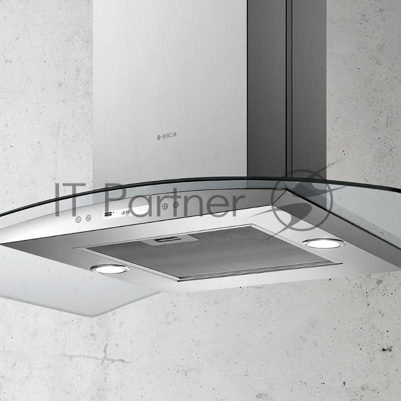 Вытяжка ELICA, Декоративный дизайн, островная, 90х60 см, 1200 куб.м., электронное управление, дисплей, нержавеющая сталь+стекло
