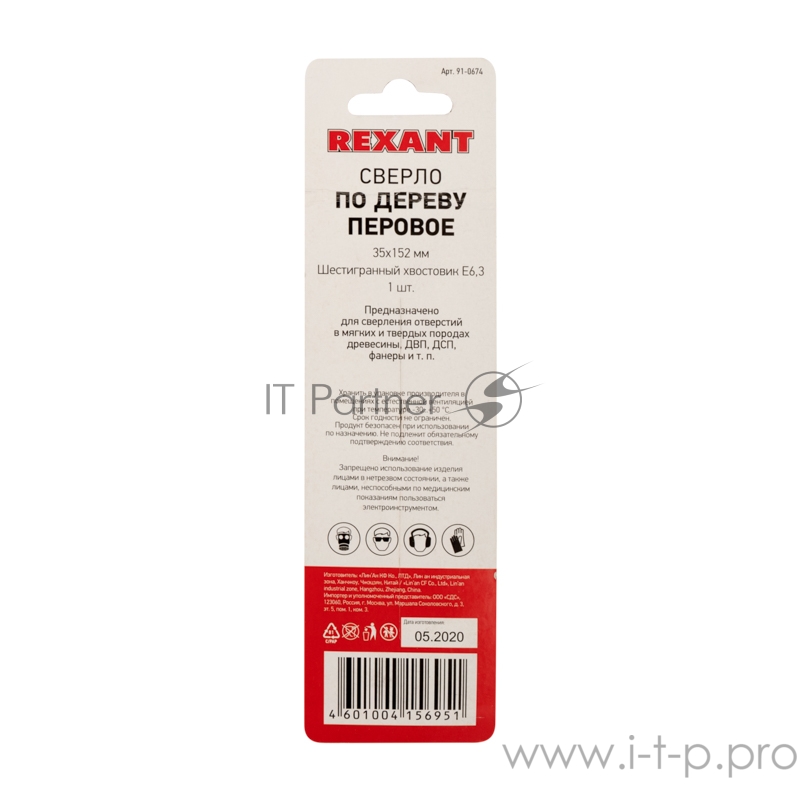 Сверло перовое по дереву 35х152 мм (шестигранный хвостовик) REXANT