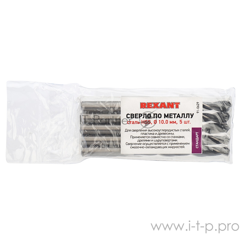Сверло по металлу10,0 мм HSS (5 шт. в упаковке) DIN 338 REXANT