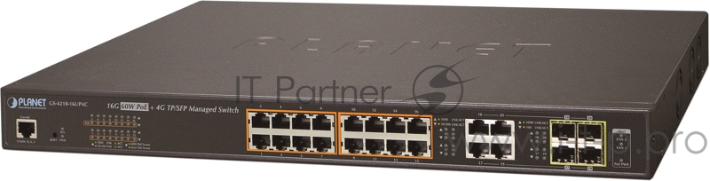 Коммутатор PLANET GS-4210-16UP4C IPv6/IPv4, 16-Port Managed 60W Ultra PoE Gigabit Ethernet Switch + 4-Port Gigabit Combo TP/SFP (400W PoE budget, SNMPv3, 802.1Q VLAN, IGMP Snooping, SSL, SSH, ACL)