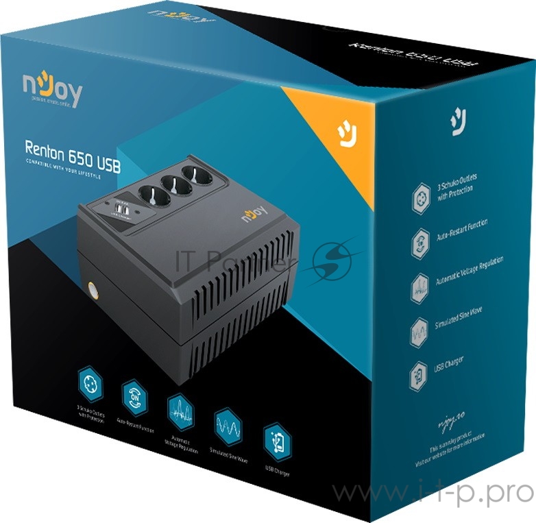 ИБП nJOY UPS 650VA Renton 650 USB (эфективная мощьность 360Вт, батарея 5 Ач, 3 евро розетки)