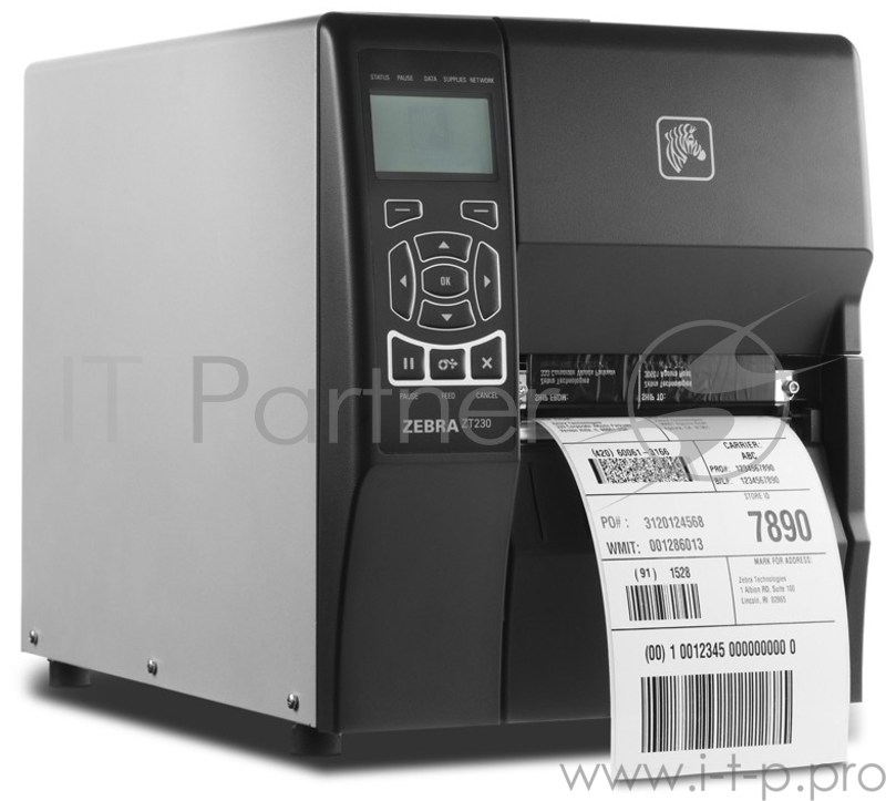 Термопринтер Zebra ZT230, для печати этикеток, 104мм, черный (COM, USB, LAN)