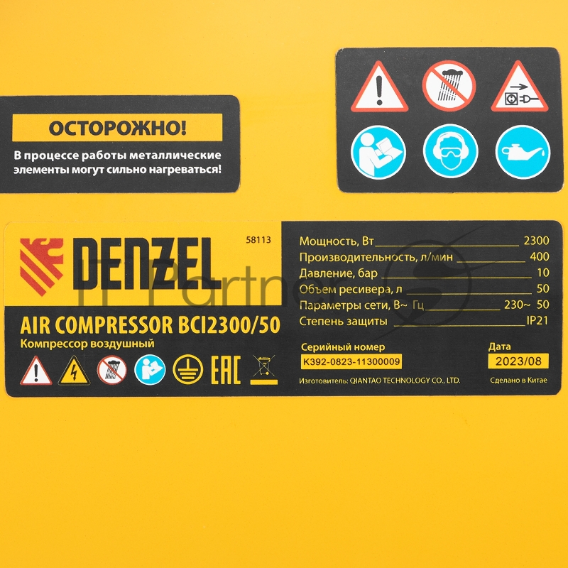 Компрессор DENZEL воздушный рем. привод BCI2300/50, 2,3 кВт, 50 литров, 400 л/мин 58113