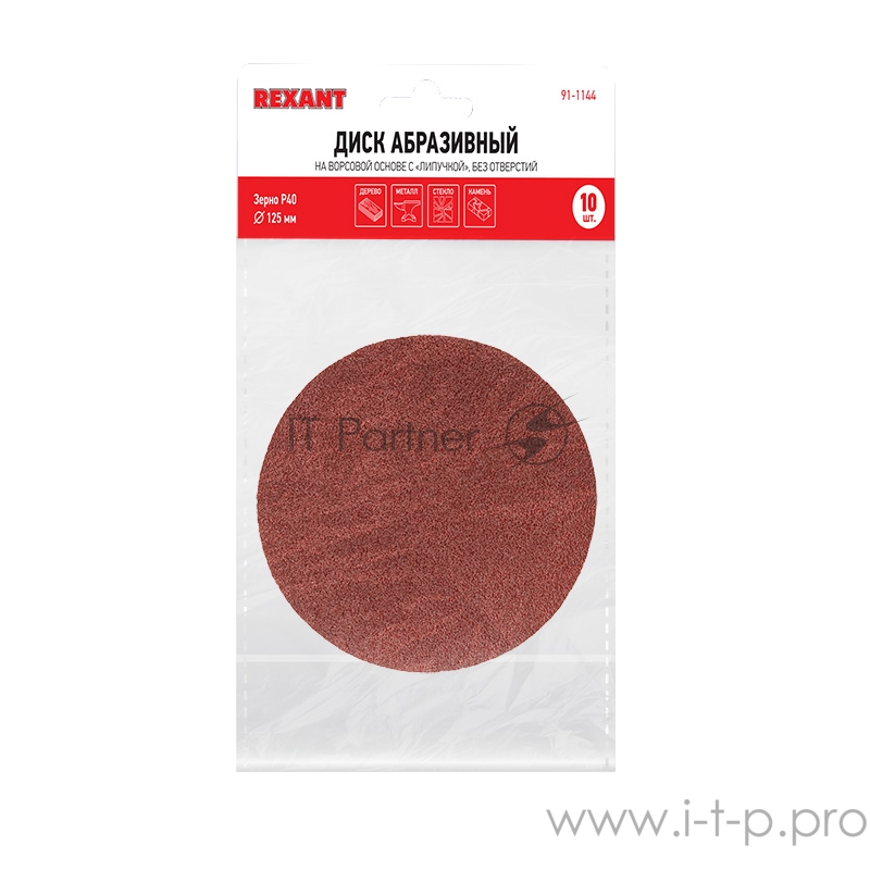 Диск абразивный на ворсовой основе на липучке, без отверстий, P 40, 125 мм, 10 шт. REXANT