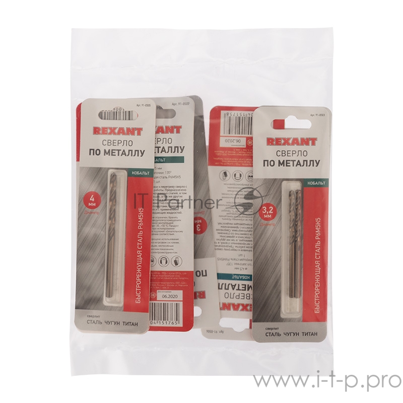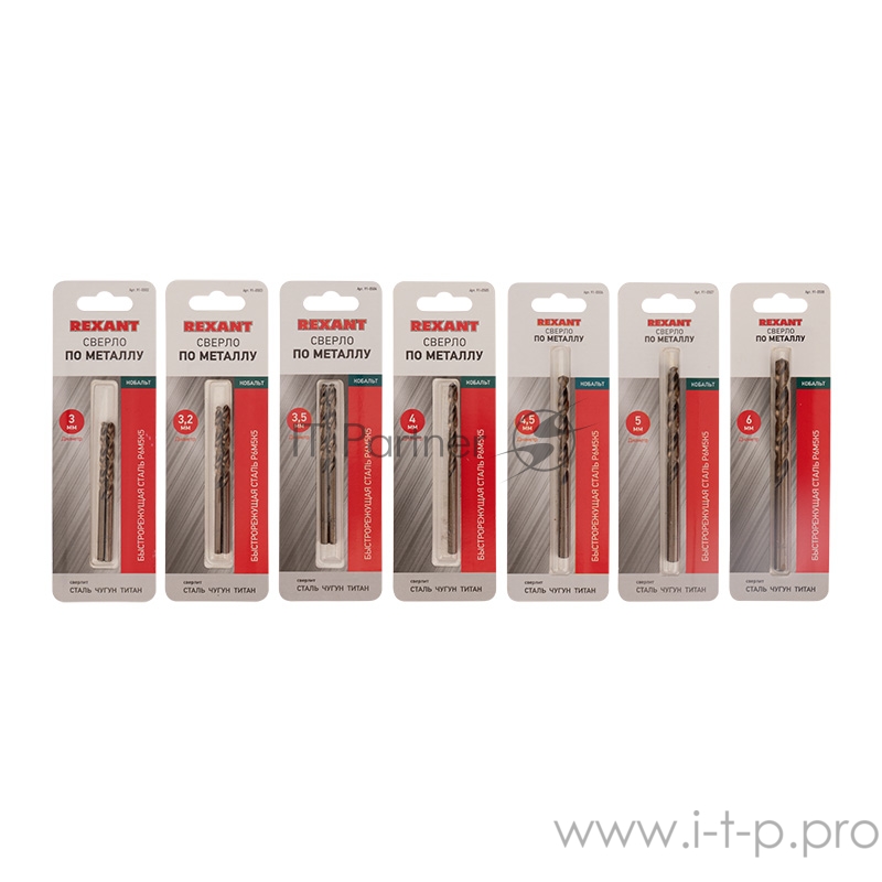 Набор сверл по металлу Токарь Standart (P6M5K5) диаметр 3-3,2-3,5-4-4,5-5-6 мм (7 шт.) REXANT
