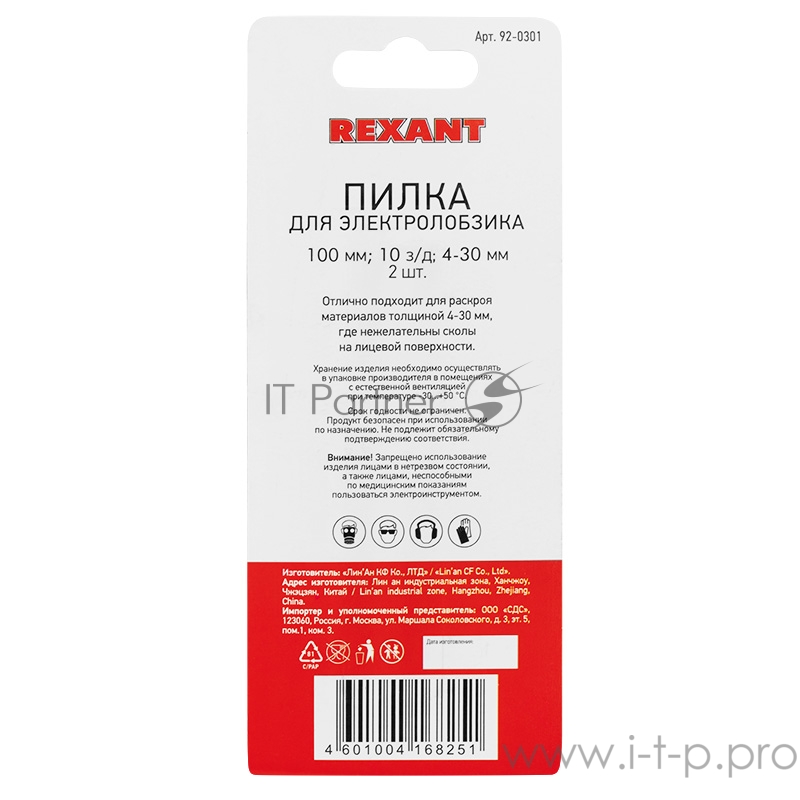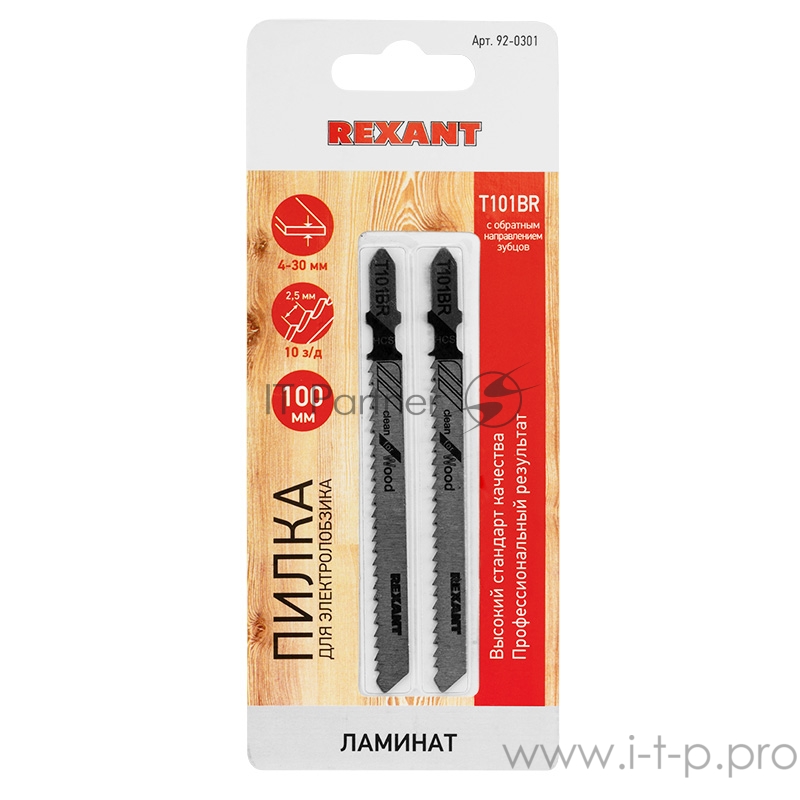 Пилка для электролобзика 100 мм 10 з/д 4-30 мм обр. зуб. Т101BR (2 шт./уп.) (дерево) REXANT