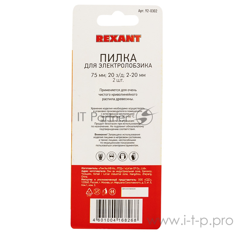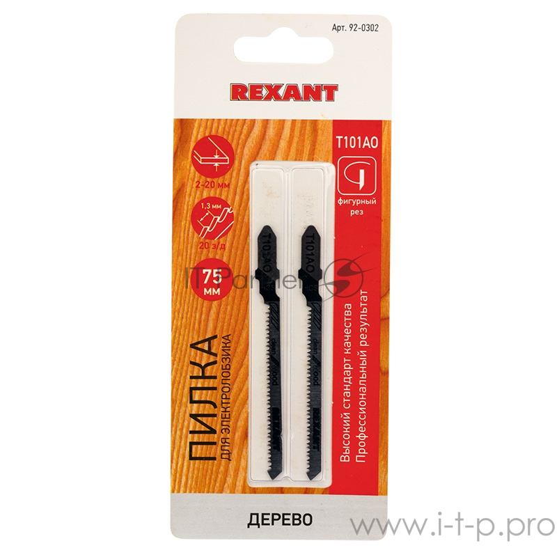 Пилка для электролобзика 75 мм 20 з/д 2-20 мм фигурный рез Т101АО (2 шт./уп.) (дерево) REXANT