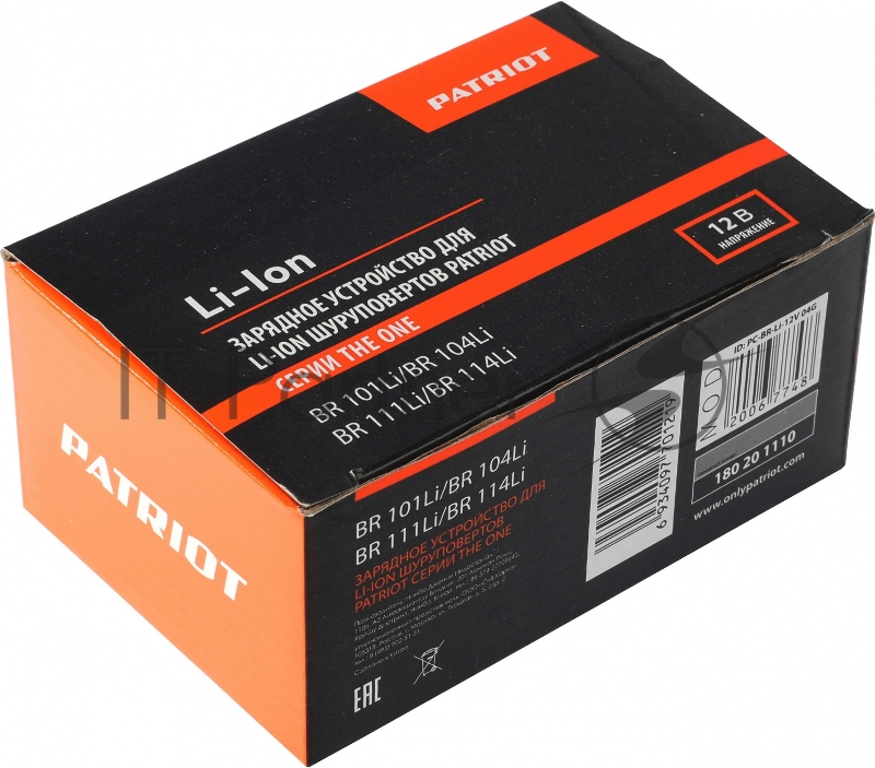 Устройство зарядное для Li-Ion шуруповертов PATRIOT серии The One, Модели: BR 101Li/BR 104Li/BR 111Li/BR 114Li, Напряжение: 12В