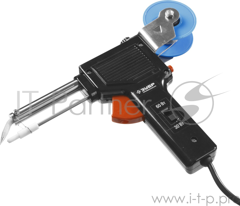 Паяльные лампы (Автомобильные) Паяльник ЗУБР "ПРОФЕССИОНАЛ" с подачей припоя, 2 мощности (30Вт/60Вт), диаметр проволоки припоя от 1 до 3мм 55304-60