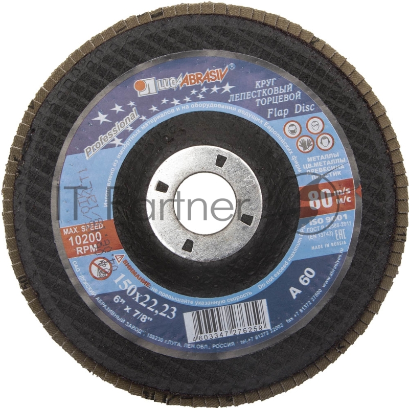Луга Круг лепестковый торцевой абразивный Луга для шлифования, 150x22,23мм, зерно P80 3656-150-80