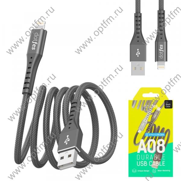 Кабель USB - Apple 8pin/lightning DOTFES A08 Durable Nylon Braided черный (1м)