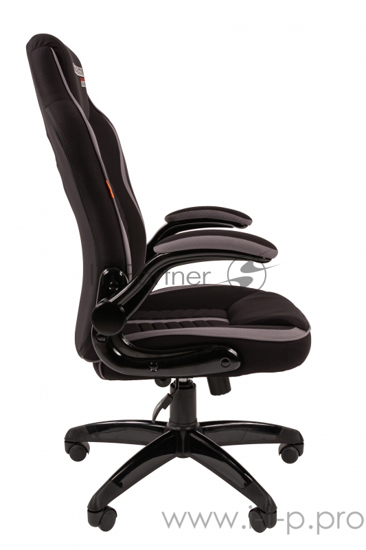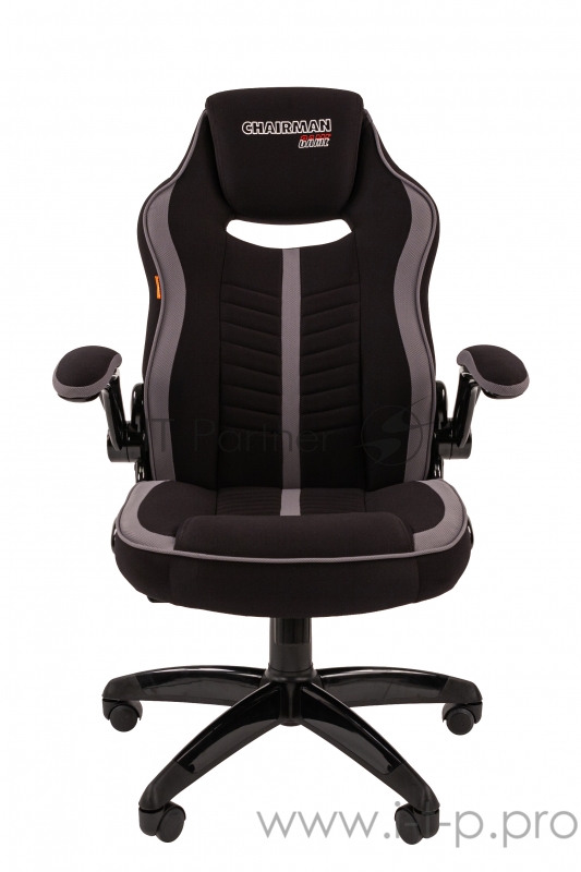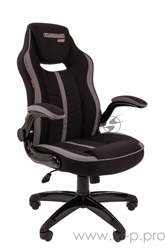 Игровое кресло Chairman game 19 чёрное/серое (ткань полиэстер, пластик, газпатрон 3 кл, ролики, механизм качания)