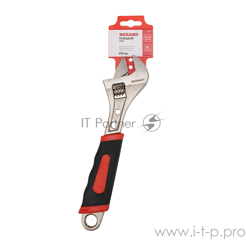 Разводной ключ REXANT 250 мм никелированный, двухкомпонентная рукоятка