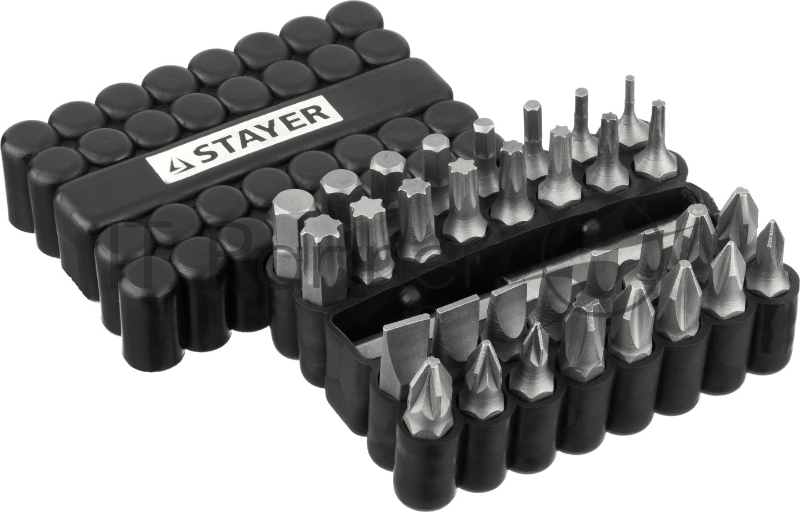 Набор STAYER: Биты Cr-V, с магнитным адаптером, в ударопрочном держателе, 33 предмета 26085-H33