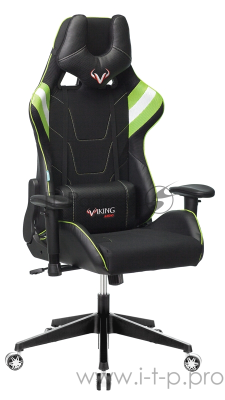 Кресло игровое Бюрократ Zombie VIKING 4 AERO черный/салатовый искусст.кожа/ткань с подголов. крестовина пластик