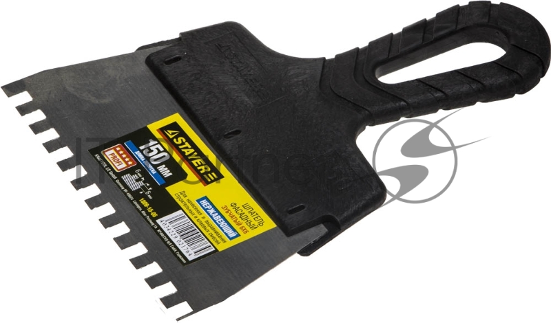 Шпатель STAYER нержавеющий зубчатый с пластмассовой ручкой, 150мм, зуб 6x6мм 1009-15-06