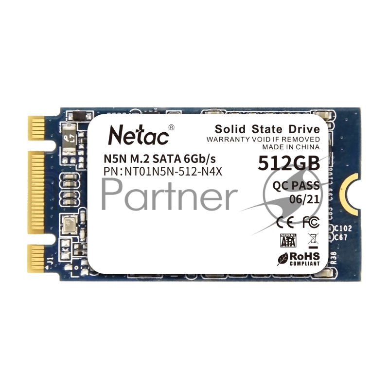 Накопитель SSD M.2 2242 Netac 512Gb N5N Series Retail (SATA3, up to 540/490MBs, 3D NAND, 280TBW, 22х42mm)