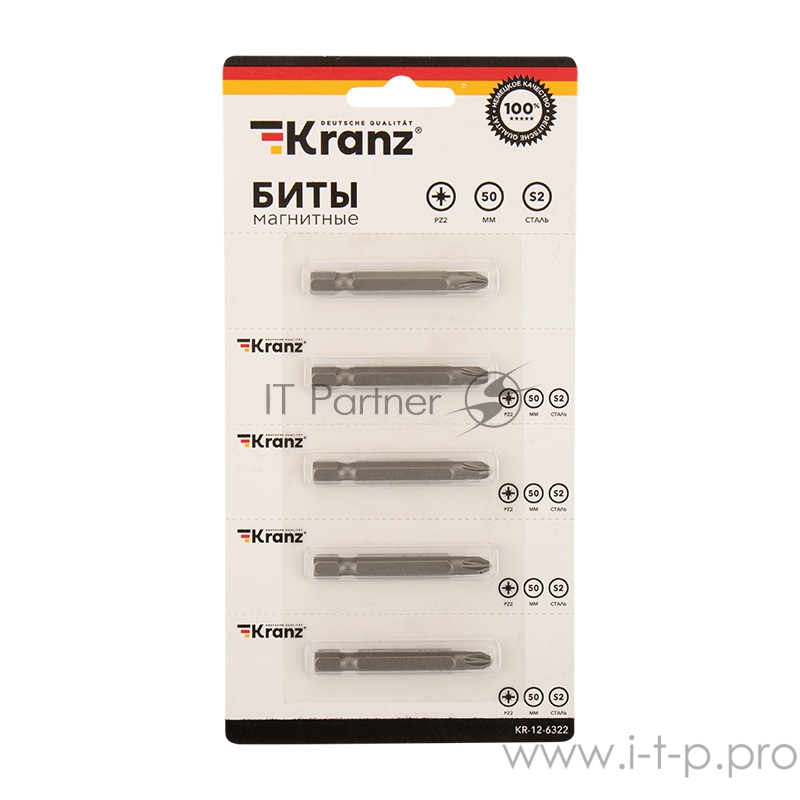 Бита PZ 2x50 мм для шуруповерта сталь S2 5 шт. (лента) Kranz