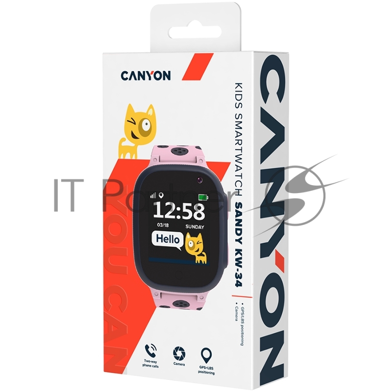 Смарт-часы Kids smartwatch, 1.44 inch colorful screen, GPS function, Nano SIM card, 32+32MB, GSM(850/900/1800/1900MHz), 400mAh battery, compatibility with iOS and android, Pink, host: 52.9*40.3*14.8mm, strap: 230*20mm, 42g