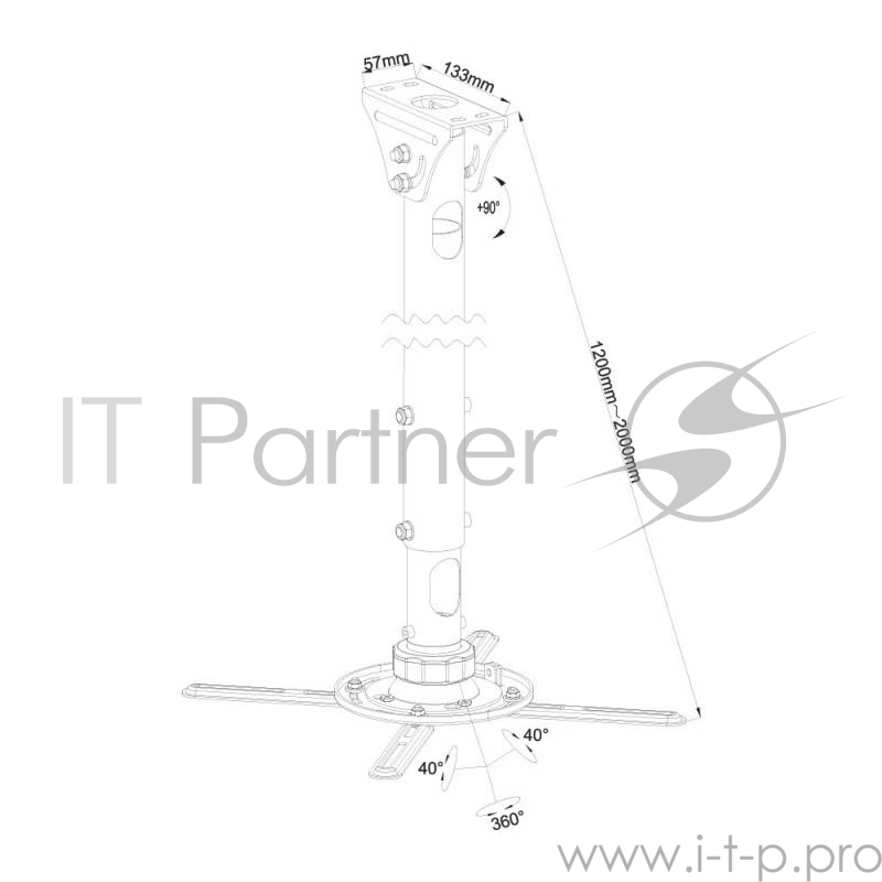 Кронштейн для проектора Kromax PROJECTOR-2000w белый макс.20кг потолочный поворот и наклон