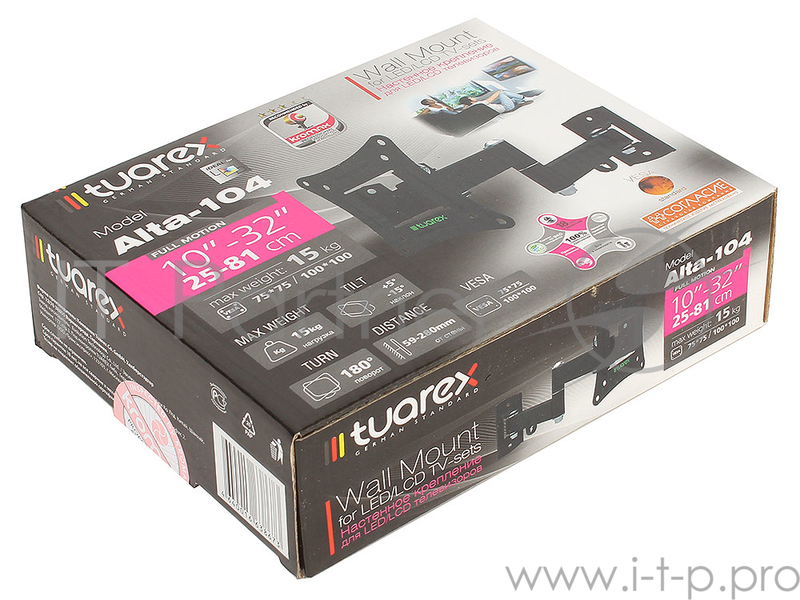 Кронштейн Tuarex ALTA-104 black, настенный для TV 10-32, поворот 180, наклон +5-15, от стены 59-28